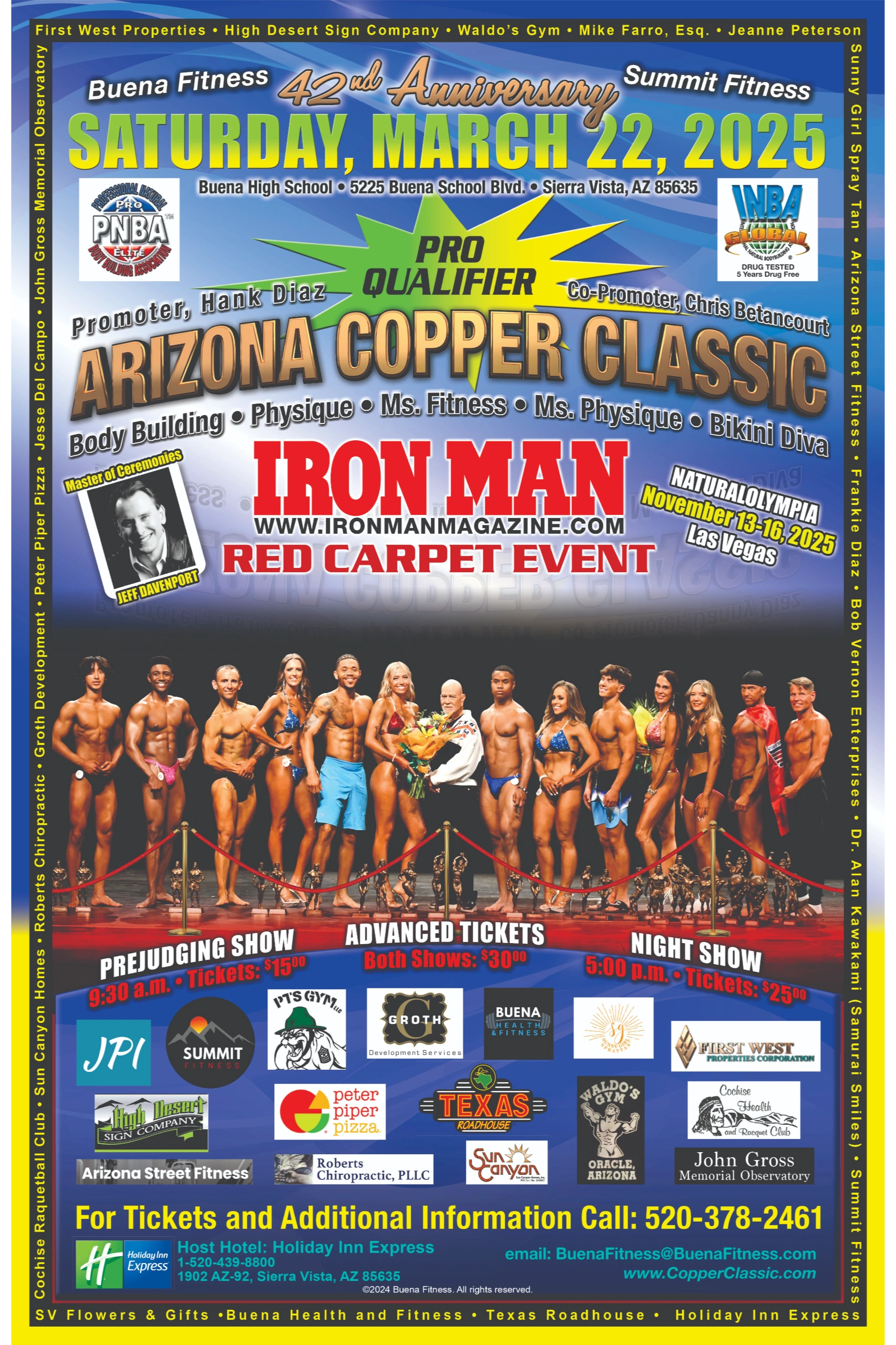 THANK YOU so much for considering what is regarded as the most highly anticipated and respected Pro-Qualifying Natural Bodybuilding and Bikini Competition in the entire Southeastern Arizona Region! Please complete the APPLICATION FORM; it is different from the Online Registration Form.